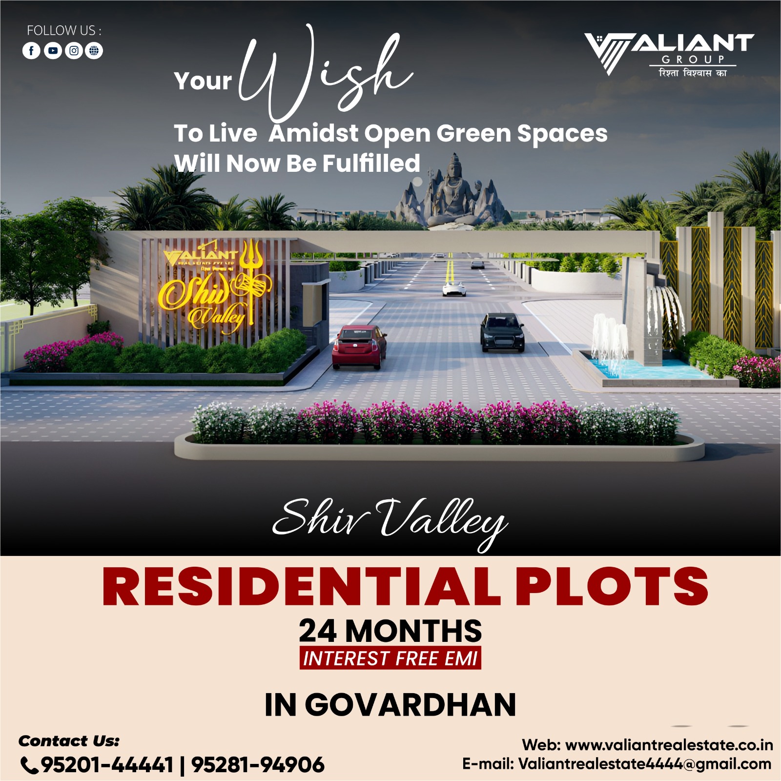 like to thank Valiant Real Estate.Plots in Goverdhan is a project by Valiant Real Estate, incorporated in 2020. Our main objective is the development of residential and commercial plots, as well as the development and sale of plots, farmhouses, and villas.